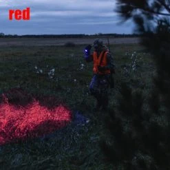 ▹ Red (side) – 40 lumens, 2 hour runtime (steady or flashing, hold switch for dimming)