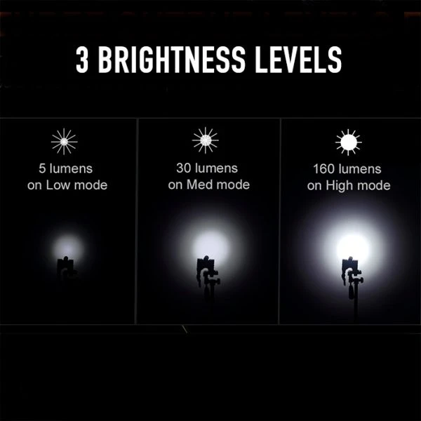 ☼ High – 160 lumens, 1 hour runtime (alkaline)