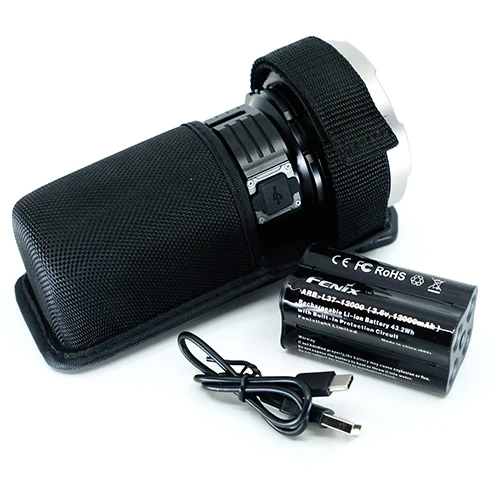 What’s included – Fenix LR40R, rechargeable battery, USB-C cable, nylon belt holster, wrist lanyard, spare O-ring
