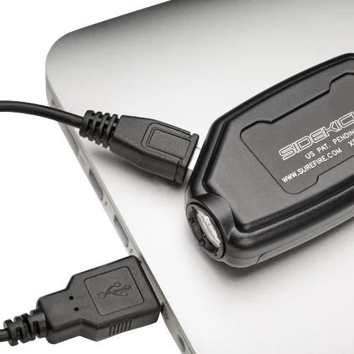 What’s included: SureFire Sidekick key chain light with internal Li-ion battery, split ring, mini carabiner clip and USB charging cable (charging plug adapters not included)