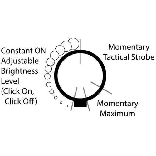 twist for strobe and to access lower brightness levels