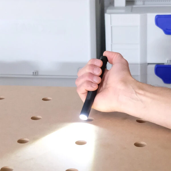 What’s included: LEDLenser P4R Core pen light, USB rechargeable battery, pocket clip, USB cable (wall plug charging adapter available separately – see accessories below)