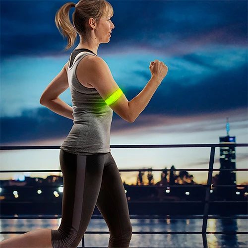 • glows or flashes neon yellow for high visibility