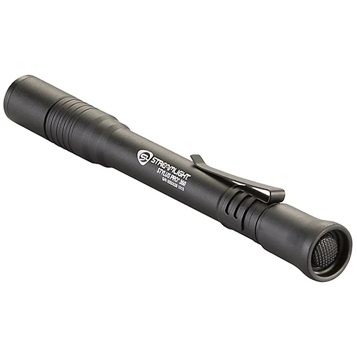 What’s included in the box: Streamlight Stylus Pro 360 flashlight, two AAA alkaline batteries, pocket clip, nylon belt holster, and lanyard.