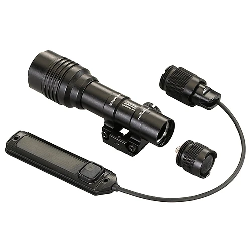 What’s included: Streamlight ProTac Rail Mount 2 light with integrated mount, pushbutton tail switch, remote pressure switch, remote retaining clips, double-sided tape, zip ties, and two CR123 lithium batteries.